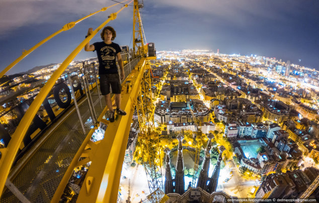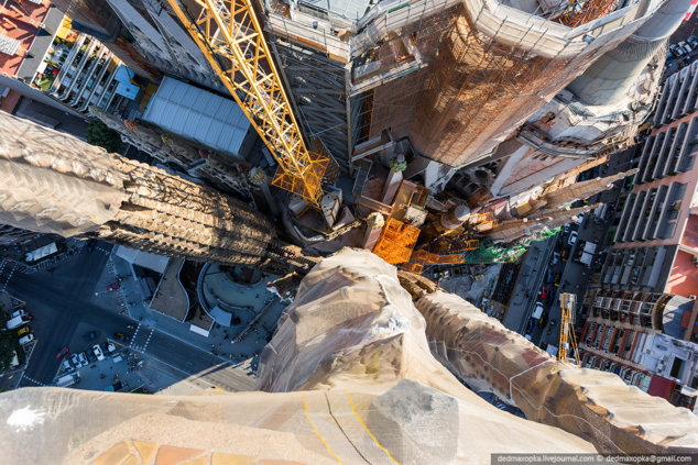 Aceste imagini din Barcelona au fost surprinse pe o macara de la capodopera lui Antoni Gaudi, Sagrada Familia, care încă se află în construcţie după mai bine de 130 de ani.