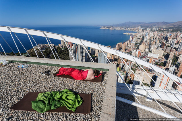 În cele din urmă, când au ajuns în oraşul spaniol Benidorm, s-a dovedit a fi prea târziu pentru a mai putea găsi cazare, aşa că băieţii au ales una dintre cele mai înalte clădiri şi au dormit pe acoperişul acesteia.