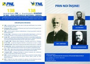 Partidul Naţional Liberal aniversează astăzi 138 de ani de la înfiinţare. Devenit în timp un simbol al valorilor democratice, pluralismului şi libertăţii PNL a marcat practic istoria modernizării instituţionale a României.