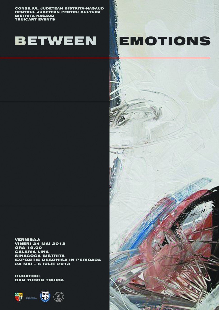 Consiliul Judeţean Bistriţa – Năsăud, Centrul Judeţean pentru Cultură Bistriţa – Năsăud în parteneriat cu TRUICART EVENTS, vă invită la deschiderea expoziţiei de pictură şi grafică „BETWEEN EMOTIONS”, vineri, 24 mai 2013, ora 19.00, la Galeria LINA, Sinagoga Bistriţa.
