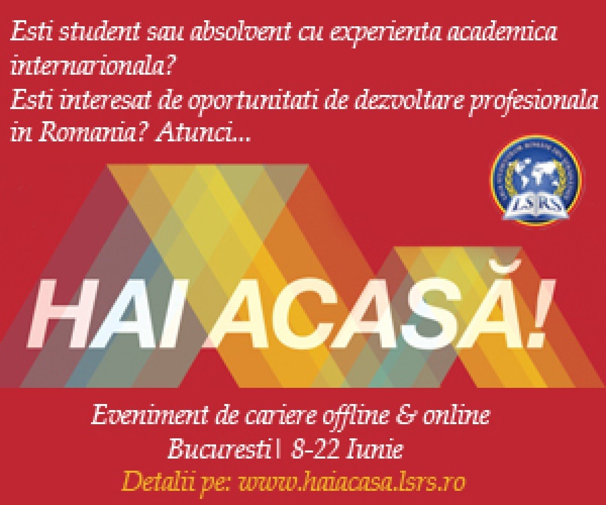 Liga Studenţilor Români din Străinătate (LSRS)  continuă înscrierile pentru cea de-a patra ediţie a Business Consulting Case Study Event (BCCSE) – workshop şi competiţie de consultanţă strategică bazată pe studii de caz. Totodată, LSRS lansează sâmbătă, 8 iunie 2013, ediţia online a evenimentului de cariere „Hai Acasă!”.