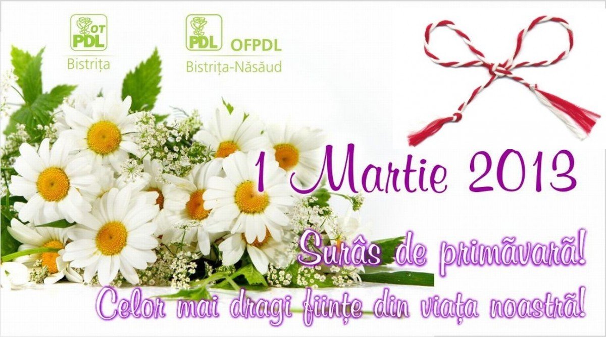 Cu ocazia zilei de 1 Martie 2013, membrii Organizaţiei Municipale de Tineret a Partidului Democrat Liberal Bistriţa, vor împărţi 2000 de mărţişoare, atât doamnelor cât şi domnişoarelor care se vor afla mâine  pe străzile  municipiului Bistriţa.
