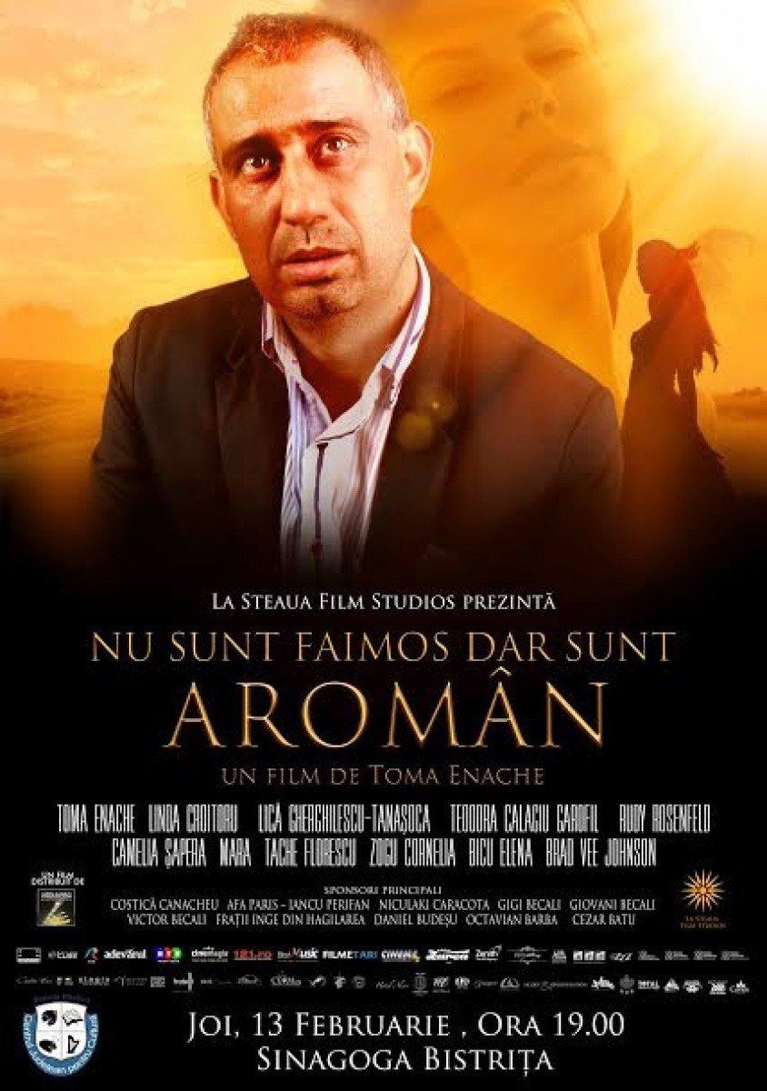 Consiliul Judeţean Bistriţa-Năsăud, Centrul Judeţean pentru Cultură Bistriţa-Năsăud Media Pro Distribution şi La Steaua Film Studios au deosebita plăcere să vă invite la premiera de gală a filmului NU SUNT FAIMOS DAR SUNT AROMÂN. Regizat de Toma Enache.