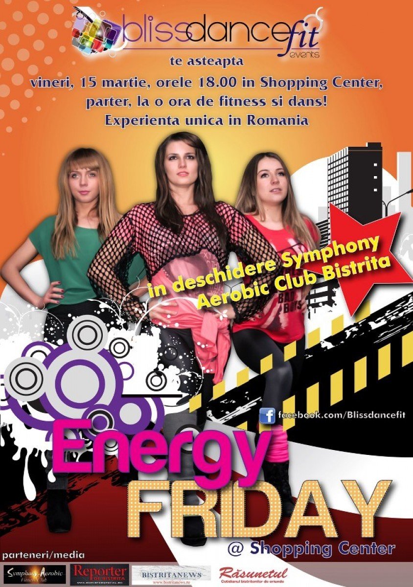 Bliss Dance Fit vă aşteaptă vineri, 15 martie de la orele 18.00 în Shopping Center, parter, la o oră de fitness şi dans. Experienţă unică în România. Mai multe vedeţi pe afişul postat.