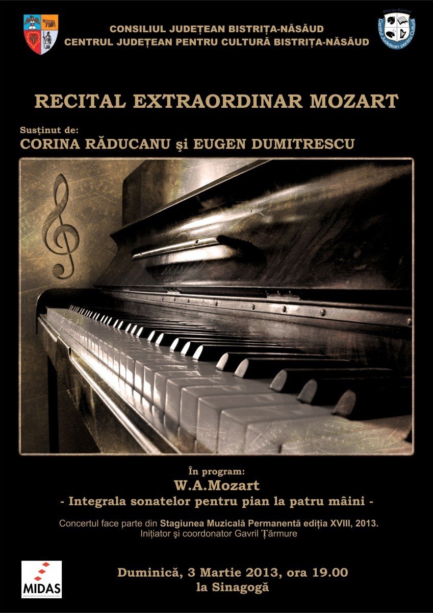 Consiliul Judetean B-N si Centrul judetean pentru CulturaB-N organizeaza „RECITAL EXTRAORDINAR MOZART” Sustinut de Corina Raducu si Eugen Dumitrescu