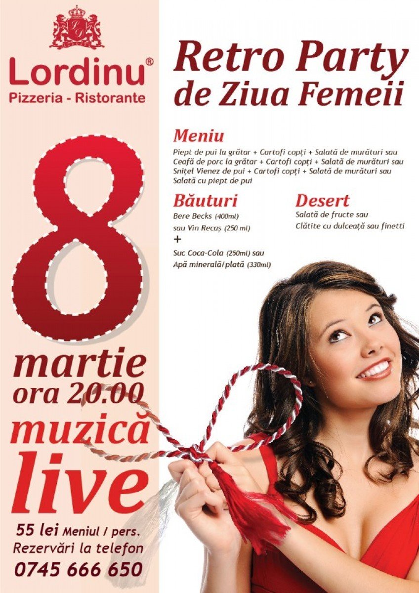 De 8 Martie Pizzeria Lordinu vă invită la „Retro Party de Ziua Femeii”.