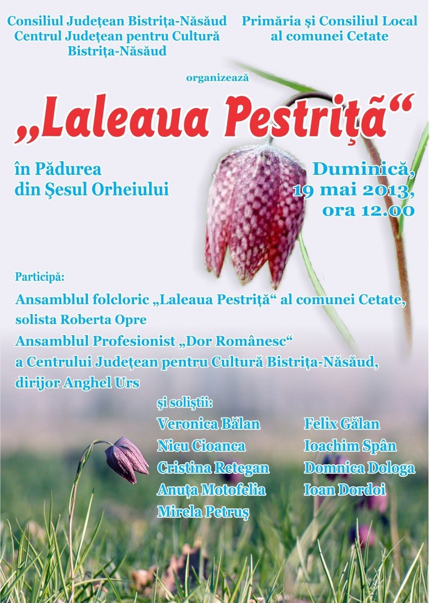 Home Social Spectacol folcloric Laleaua Pestrita duminică, 19 mai 2013 ora 12.00 în pădurea din Şesul Oreheiului