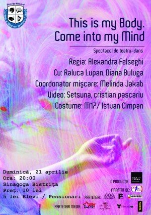 Consiliul Judeţean Bistriţa-Năsăud şi Centrul Judeţean pentru Cultură Bistriţa-Năsăud vă invită la spectacolul de teatru-dans „This is my body. Come into my mind”.