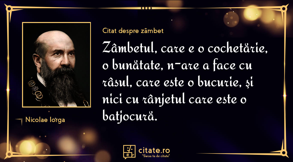 Învățați să lăsați pe chipul vostru să înflorească un zâmbet, este darul pe care-l oferiți aproapelui, este darul pe care-l oferiți întregului Univers.- Octavian Paler