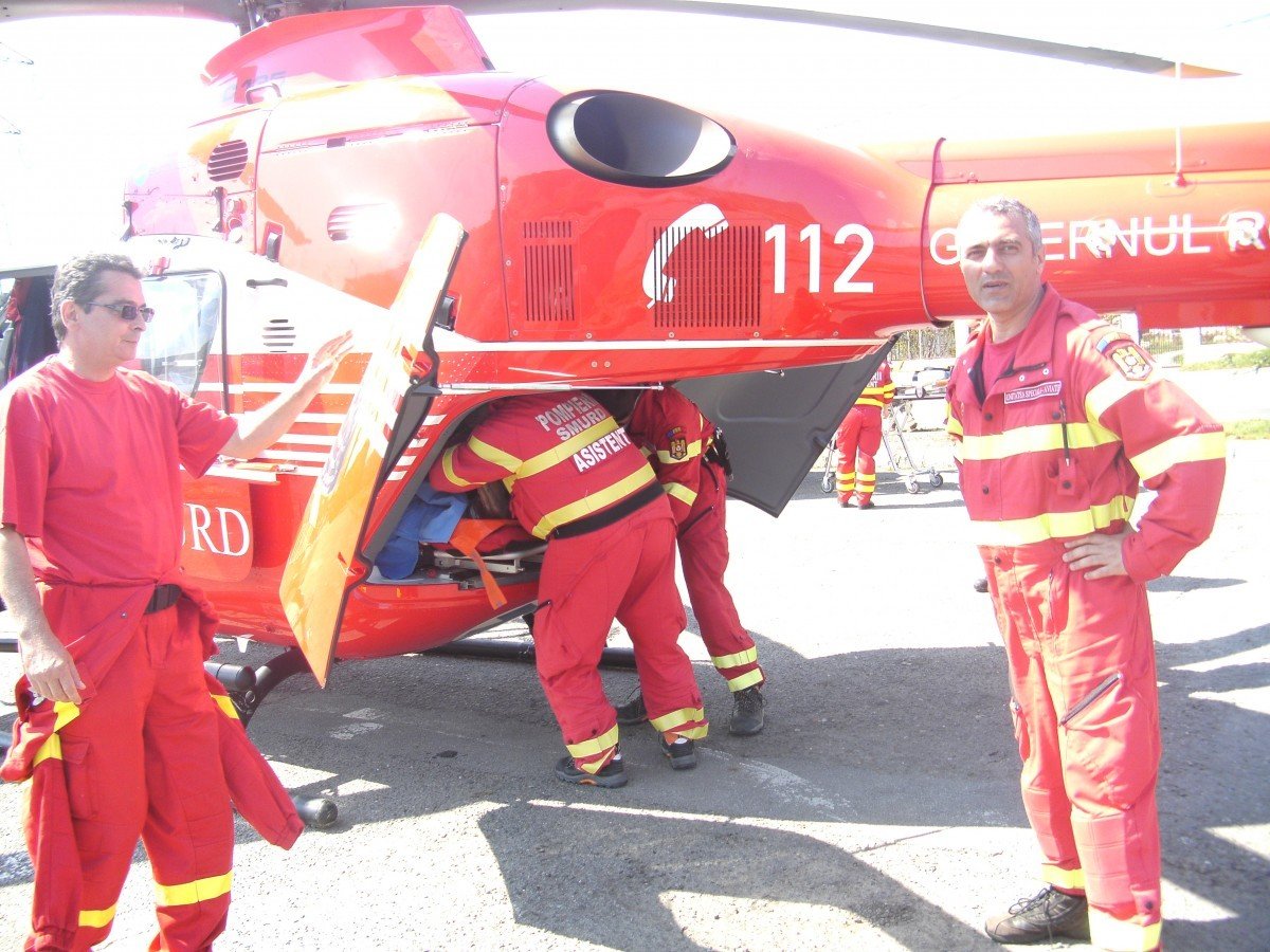 Acţiunea de mutare a bărbatului din maşină în elicopter s-a petrecut pe poligon. Mai mulţi paramedici l-au luat cu targa pe bolnav şi l-au pus în elicopter.